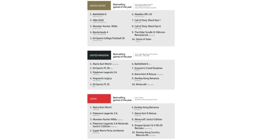 Главные новости » Эксклюзив » Battlefield 6, GTA 6 и Mario Kart World на вершине — итоги 2025 от аналитиков
