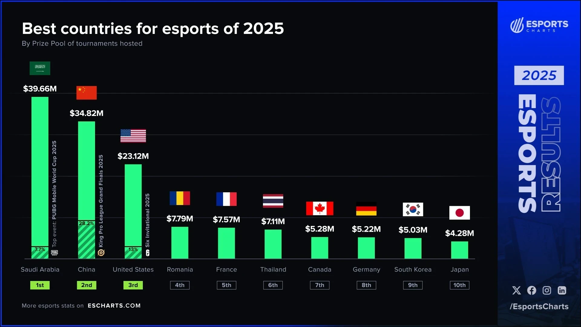 Суммарно на турнирах, организованных или профинансированных Саудовской Аравией, в 2025 году было разыграно $39,66 млн. Этот показатель позволил стране обойти традиционных гигантов рынка: