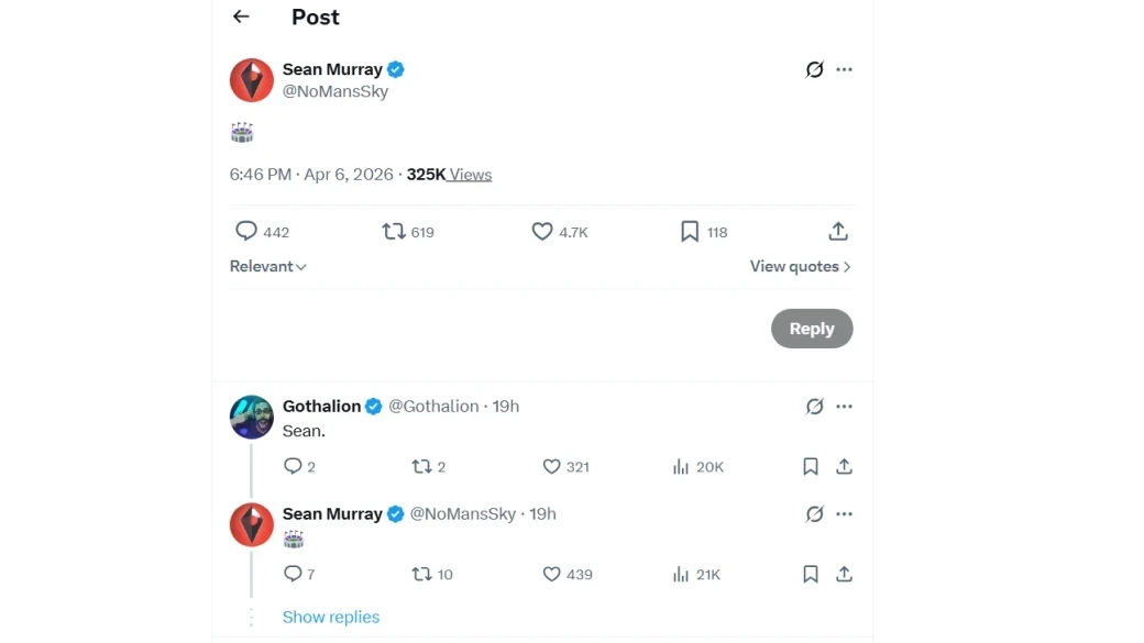 Обложка: скриншот игры No Man's SkyГлава Hello Games Шон Мюррей, похоже, продолжает постить один эмодзи перед анонсом крупного обновления для No Man’s Sky. Это уже традиция.