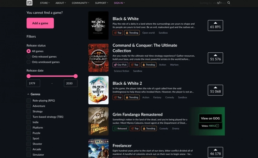 Новый список GOG позволит голосовать за появление желанной «классики» самим игрокам