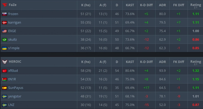 Статистика серии карт матча FaZe против HEROIC