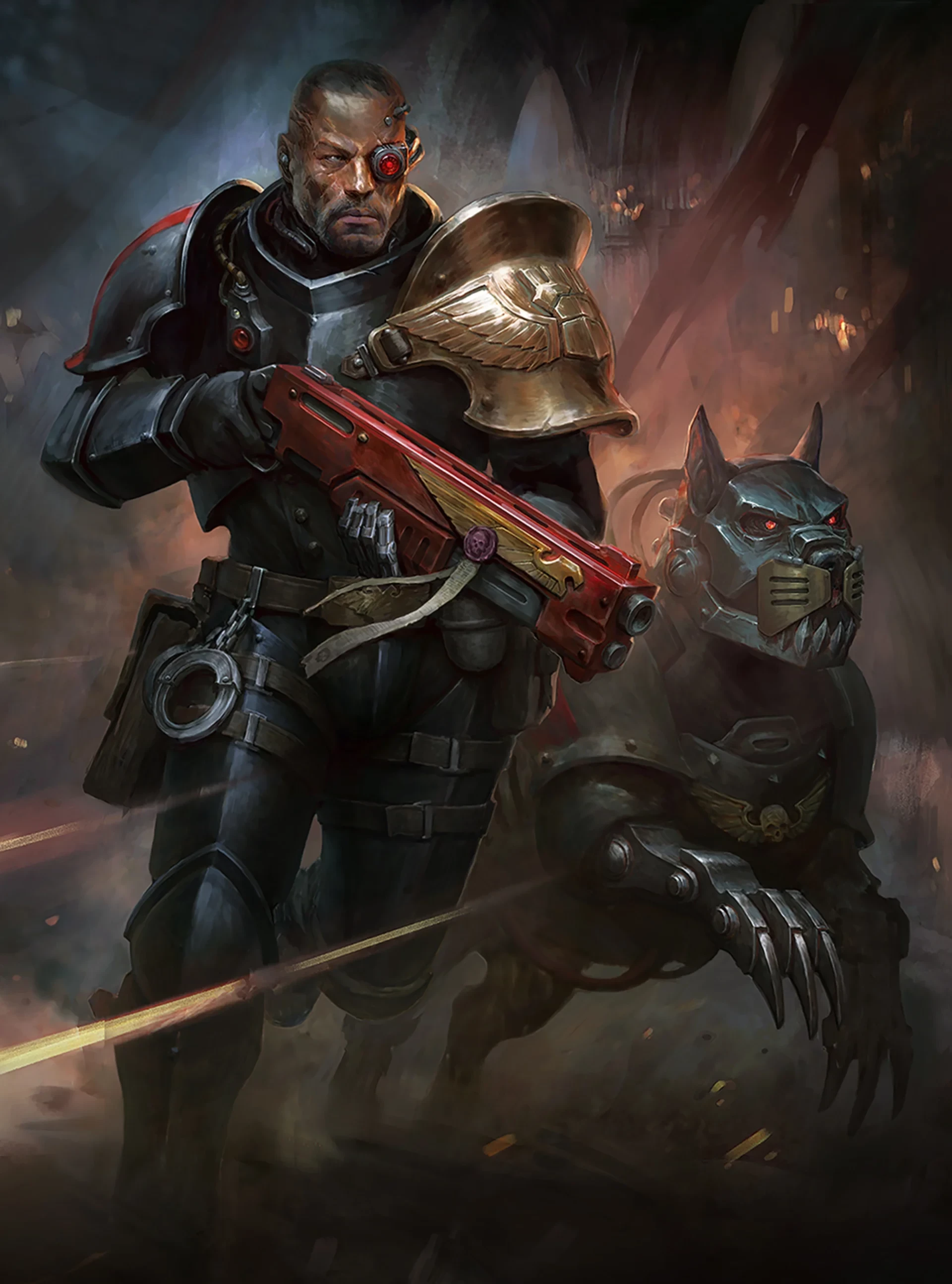 Каждый Арбитр проходил обучение в Схоле Прогениум — том же учреждении, где готовят комиссаров, инквизиторов, Темпестусов и Сестер Битвы. Они получают особую идеологическую и физическую подготовку. В их арсенале тяжелые дробовики, верные кибер-фамильяры и непробиваемые щиты. Вокруг последних, кстати, крутится целая новая механика в игре.