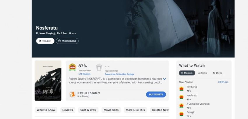 Самое интересное о кино на YouTube канале Игромании!Обложка: кадр фильма «Носферату» 2024В США, Канаде и Испании наступил премьерный день хоррора «Носферату» режиссёра Роберта Эггерса («Ведьма», «Варяг», «Маяк»). И на агрегаторах Rotten Romatoes и Metacritic появились оценки новинки критиков: