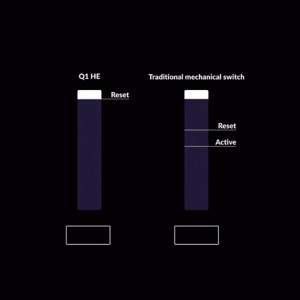 В составе Keychron Q1 HE используются переключатели Gateron 2.0 Hall Effect Magnetic Switch. По сравнению с традиционными механическими переключателями уникальная особенность переключателей с эффектом Холла состоит в том, что они способны различать разные степени нажатий от лёгкого до полного.