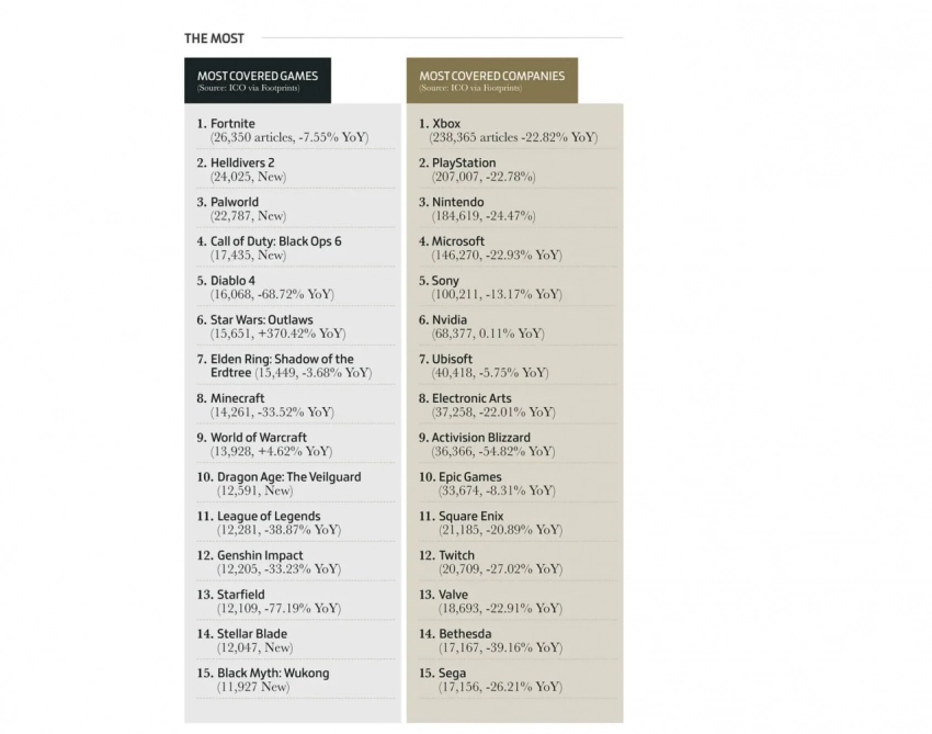 Среди компаний чаще всего обсуждали Xbox (больше 238 тысяч статей), PlayStation (207 тысяч статей) и Nintendo (свыше 184 тысяч статей).