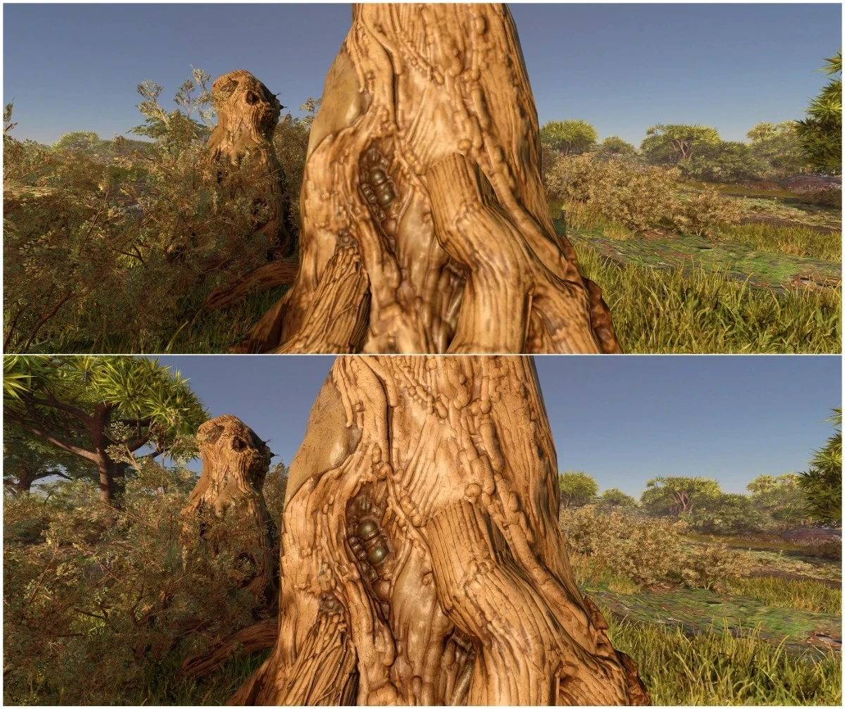 Отдельно моддер отмечает, что пакет избавляет текстуры от артефактов сжатия BC1 — формата с потерями, который работает с блоками 4×4 пикселя. Такой способ помогает сильно уменьшить размер файлов, однако заметно ухудшает качество изображения.