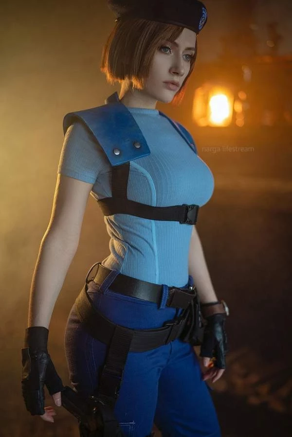 Прекрасная оригинальная Джилл Валентайн из первой части Resident Evil. Именно в таком облике она отправилась в поместье Спенсер. Более классический облик в топике и юбке был уже в третьей части серии.