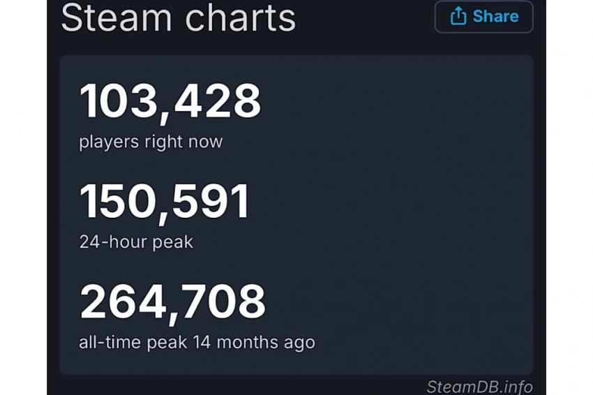 Отметим, что максимальная отметка составляет более 264,7 тыс. Произошло это в феврале 2024 года — в день релиза. Далее онлайн начал стремительно падать и не превышал отметку в 5 тысяч с ноября прошлого года.