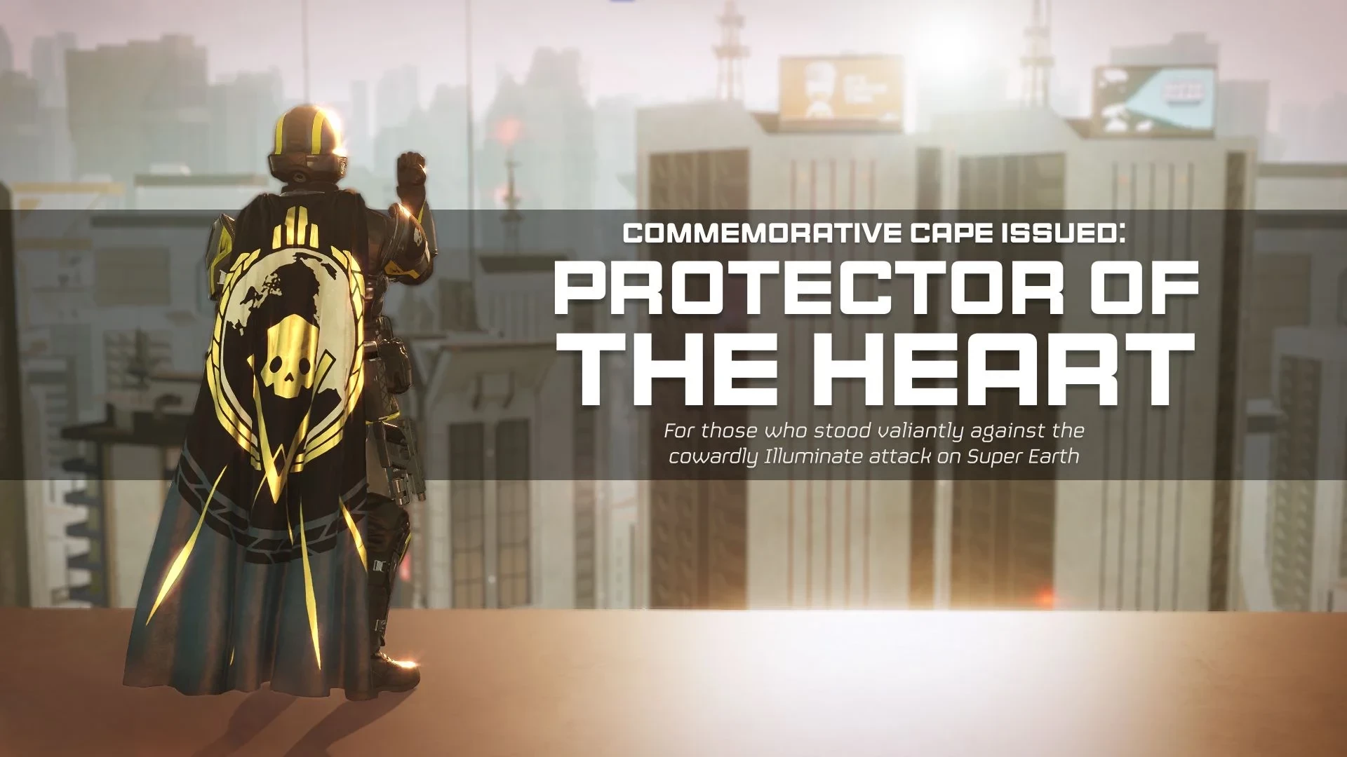 Мы выпустили плащ в память о защите Супер-Земли от враждебных, злых и угрожающе непознаваемых инопланетных сил. Этот плащ представляет безграничную благодарность всех граждан за бескорыстные и бесчисленные жертвы Адских десантников.